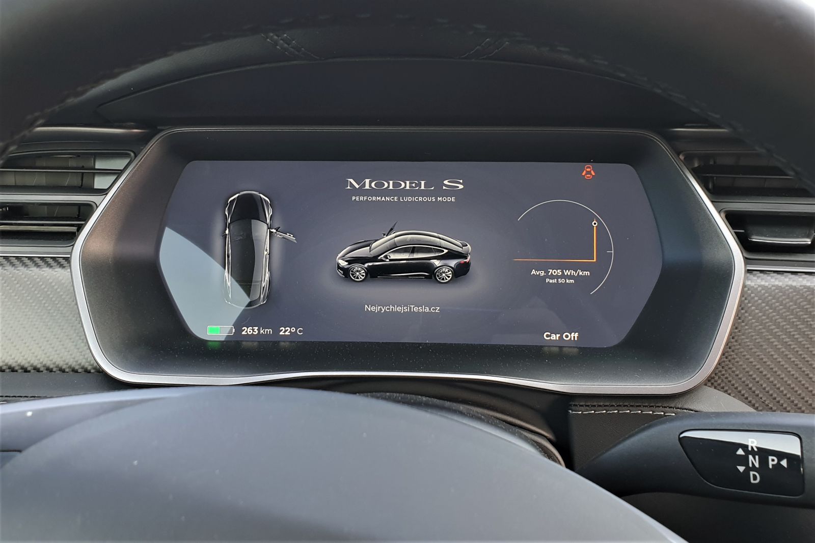 On frosty days and traveling short distances, consumption may rise to 27 kWh, while the lowest consumption I reached was cca 15 kWh. The most interesting to me is the long-term average of 23 kWh per 100 km. This is achieved including all demonstration rides, all thousands of accelerations, etc. In addition, I almost invariably drive with the “sport” mode switched on. You see, I’m not entirely focused on eco driving. Quite the contrary, I take full advantage of the Raven’s fantastic performance led by eight hundred horses and a thousand Newton meters of torque. Tesla has obviously been working long years on reducing consumption. Despite the super sports car performance, I drive using economic sedan consumption. In this, Tesla is really at the forefront.